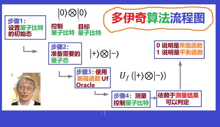 总而言之,多伊奇这位两耳不闻窗外事的古怪科学家,在1985年突然声名大振,因为他发表了一篇里程碑式的论文,文中他构造了量子图灵机,并展示了多伊奇算法,表明量子计算可以比经典更快。7年后(1992年),又发表了对多伊奇算法的推广【4】。在多伊奇算法启发下的之后两年间,量子算法来到多产期。Simon、Shor和Grover的算法都在这期间相继发表。