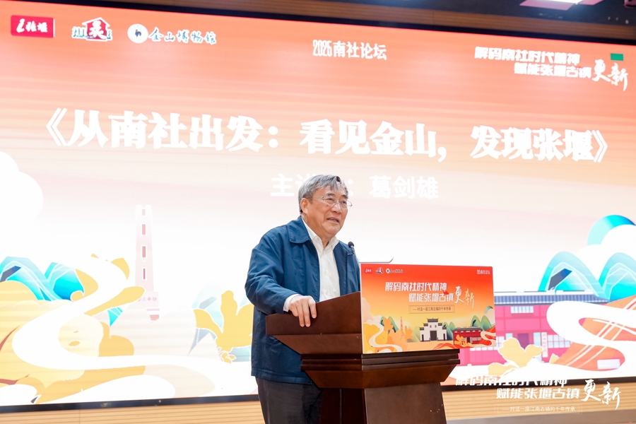 在主旨发言环节,葛剑雄以《从南社出发:看见金山,发现张堰》为题,从独特的视角出发,深入剖析了南社与金山、张堰之间的紧密联系,引发了在场听众对地方历史文化价值的再思考。
