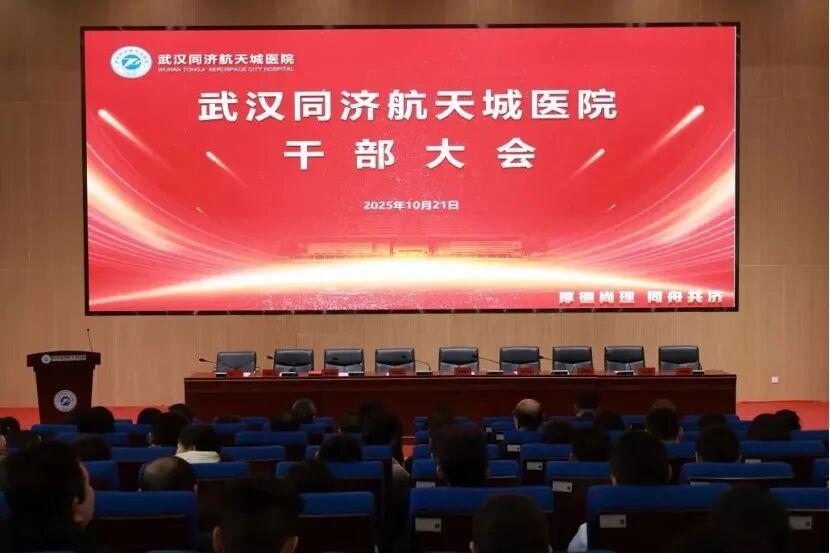10月21日,武汉同济航天城医院干部大会在学术报告厅隆重举行。会议宣布了新洲区委区政府关于医院领导班子成员任职的决定。