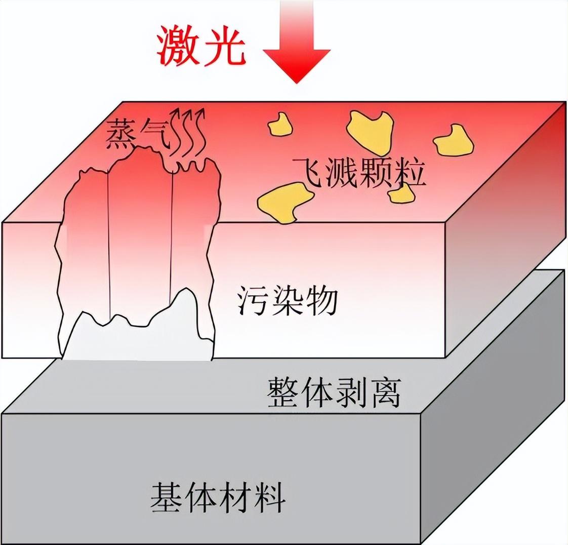 1. 分解或蒸发:当激光能量足够高时,污染物的温度将超过其分解和气化温度,变成蒸汽或分解气体飘走。这是最主要的去除方式。
